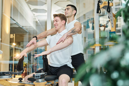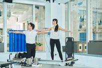 Instructor demos on the reformer and other equipment